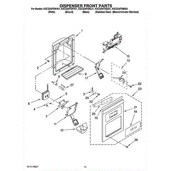 Parts for Kitchenaid KSCS25FSMS01: 08 - Dispenser Front Parts