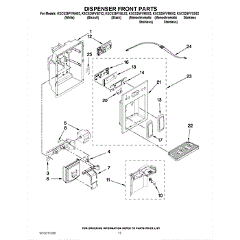 Parts for Kitchenaid KSCS25FVMK02: 08 - Dispenser Front Parts