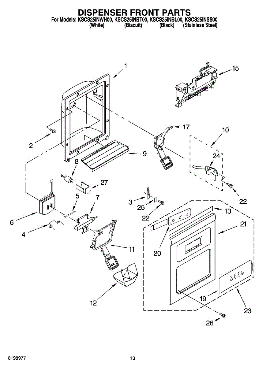 Parts for Kitchenaid KSCS25INBT00: 08 - Dispenser Front Parts