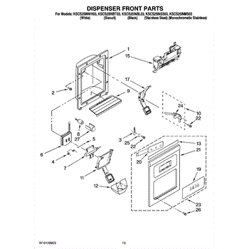Parts for Kitchenaid KSCS25INBT03: 08 - Dispenser Front Parts