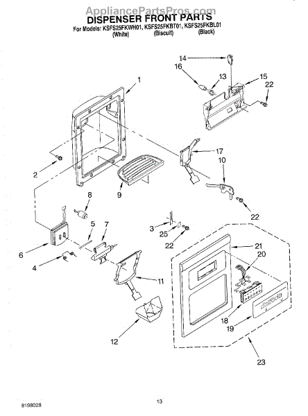 Parts for Kitchenaid KSFS25FKWH01: 08 - Dispenser Front Parts