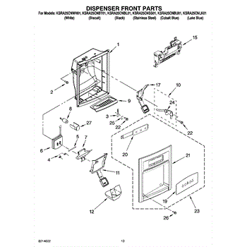 The Ice Dispenser Guide is an OEM replacement part for Whirlpool brand refrigerators. These brands also include Maytag, KitchenAid, Norge, Roper, Estate, and Kenmore models. It directs ice from the ice bucket to the dispenser chute. It helps to prevent jams by guiding the ice through the dispenser system smoothly and evenly.
