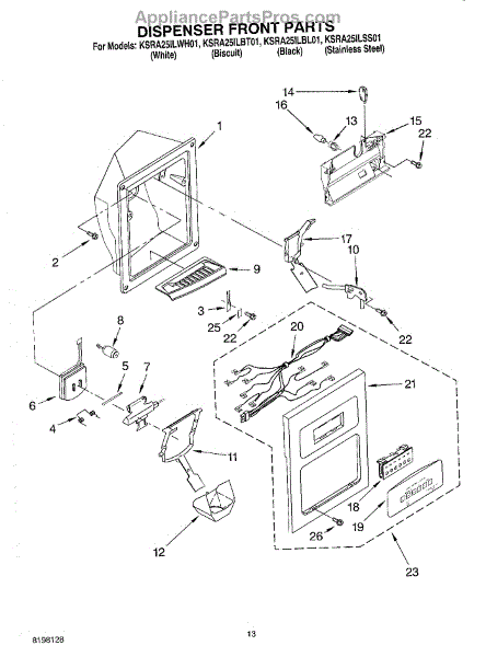 Parts for Kitchenaid KSRA25ILSS01: 08 - Dispenser Front Parts
