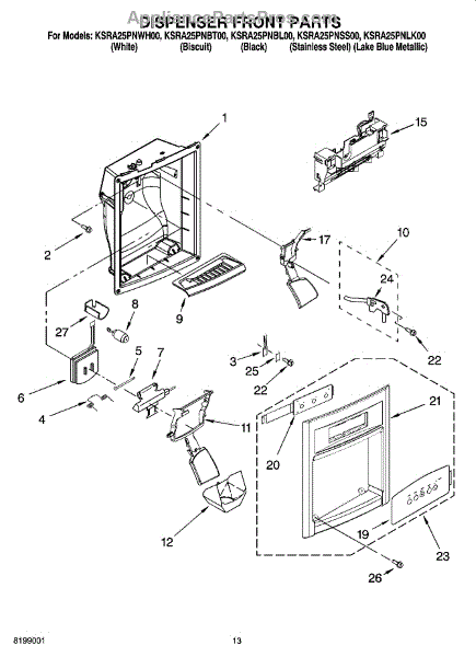 Causes of a bad strain relief involve wear and flexing fatigue of the plastic over extensive dispensing cycles. Exposure to moisture or liquid damage inside the fridge liner may prematurely degrade connecting parts as well.