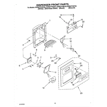 The Ice Dispenser Guide is an OEM replacement part for Whirlpool brand refrigerators. These brands also include Maytag, KitchenAid, Norge, Roper, Estate, and Kenmore models. It directs ice from the ice bucket to the dispenser chute. It helps to prevent jams by guiding the ice through the dispenser system smoothly and evenly.