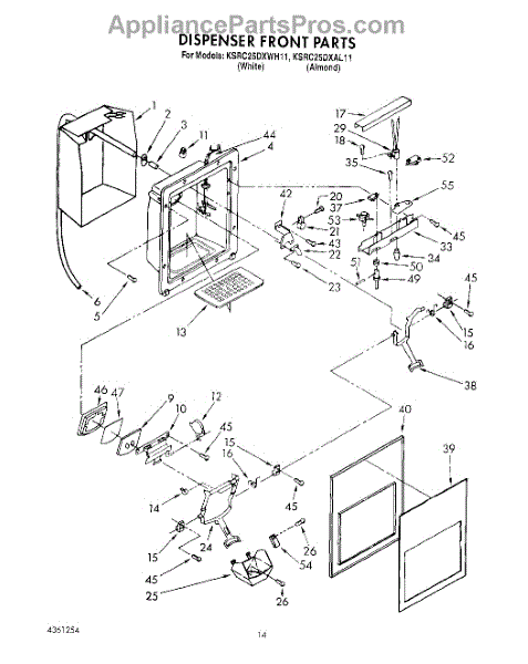 Parts for Kitchenaid KSRC25DXWH11: 10 - Dispenser Front Parts