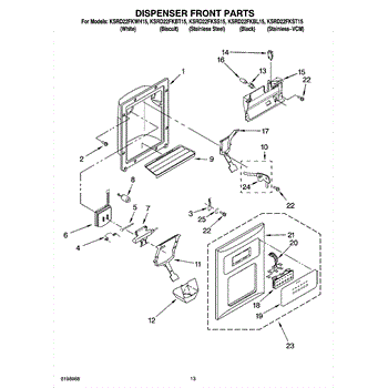 Parts for Kitchenaid KSRD22FKSS15: 08 - Dispenser Front Parts