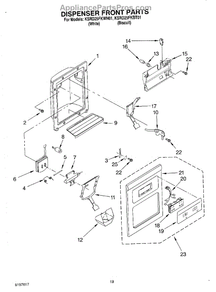 Parts for Kitchenaid KSRD25FKBT01: 08 - Dispenser Front Parts