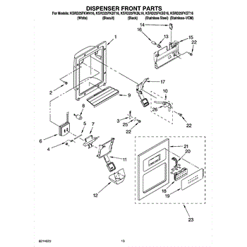 The Dispenser Overflow Grille is an OEM part for Whirlpool refrigerators. This grille sits below the water and ice dispenser on the refrigerator door, catching any spills or overflow to keep the area clean and prevent water from dripping down the refrigerator. For Black order 2206670B, for Bisque order 2206670T