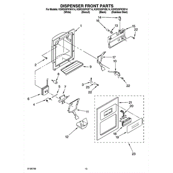 Parts for Kitchenaid KSRD25FKWH14: 08 - Dispenser Front Parts