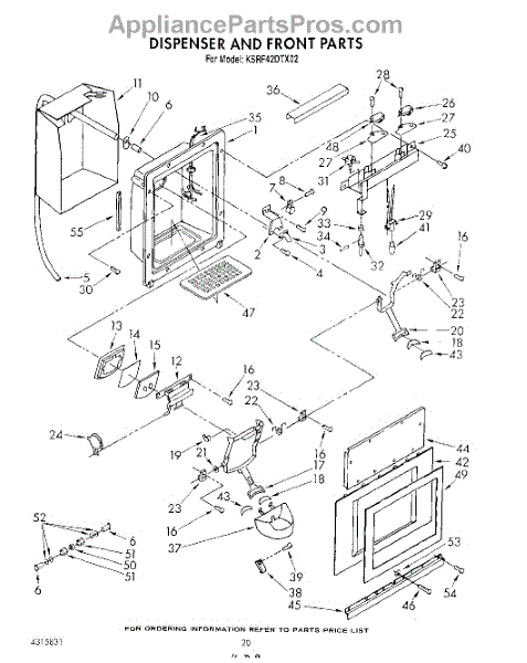 Parts for Kitchenaid KSRF42DTX02: 12 - Dispenser And Front Parts