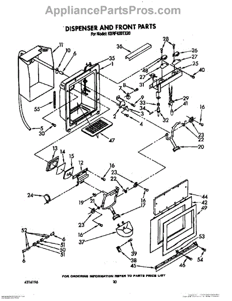 Parts for Kitchenaid KSRF42DTX20: 13 - Dispenser And Front Parts