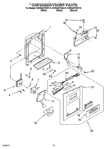 Parts for Kitchenaid KSRG25FKBT15: 08 - Dispenser Front Parts