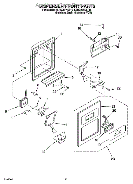 Parts for Kitchenaid KSRG25FKST16: 08 - Dispenser Front Parts