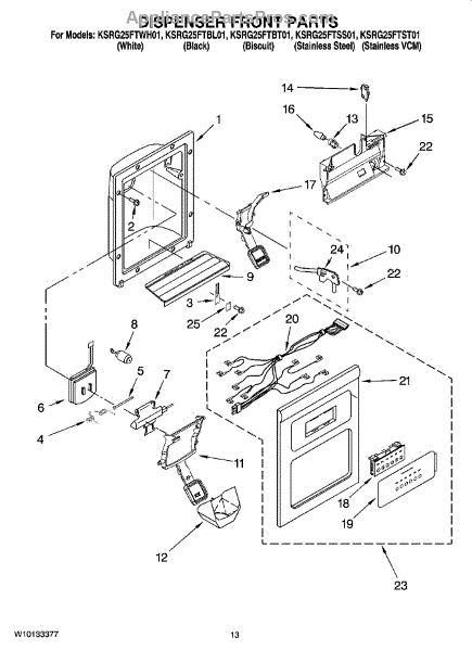 Parts for Kitchenaid KSRG25FTBT01: 08 - Dispenser Front Parts