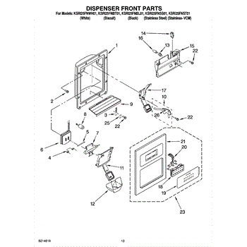 Parts for Kitchenaid KSRI25FNBT01: 08 - Dispenser Front Parts