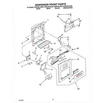 The Dispenser Overflow Grille is an OEM part for Whirlpool refrigerators. This grille sits below the water and ice dispenser on the refrigerator door, catching any spills or overflow to keep the area clean and prevent water from dripping down the refrigerator. For Black order 2206670B, for Bisque order 2206670T