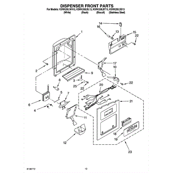 Parts for Kitchenaid KSRK25ILWH13: 08 - Dispenser Front Parts