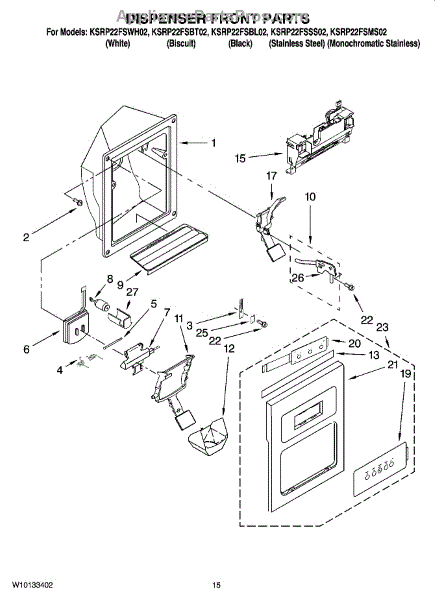 Parts for Kitchenaid KSRP22FSMS02: 09 - Dispenser Front Parts