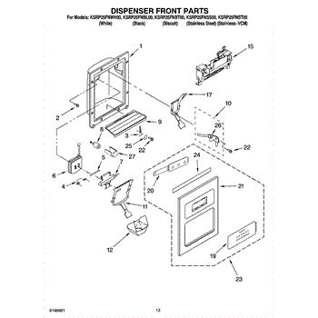 The Dispenser Overflow Grille is an OEM part for Whirlpool refrigerators. This grille sits below the water and ice dispenser on the refrigerator door, catching any spills or overflow to keep the area clean and prevent water from dripping down the refrigerator. For Black order 2206670B, for Bisque order 2206670T