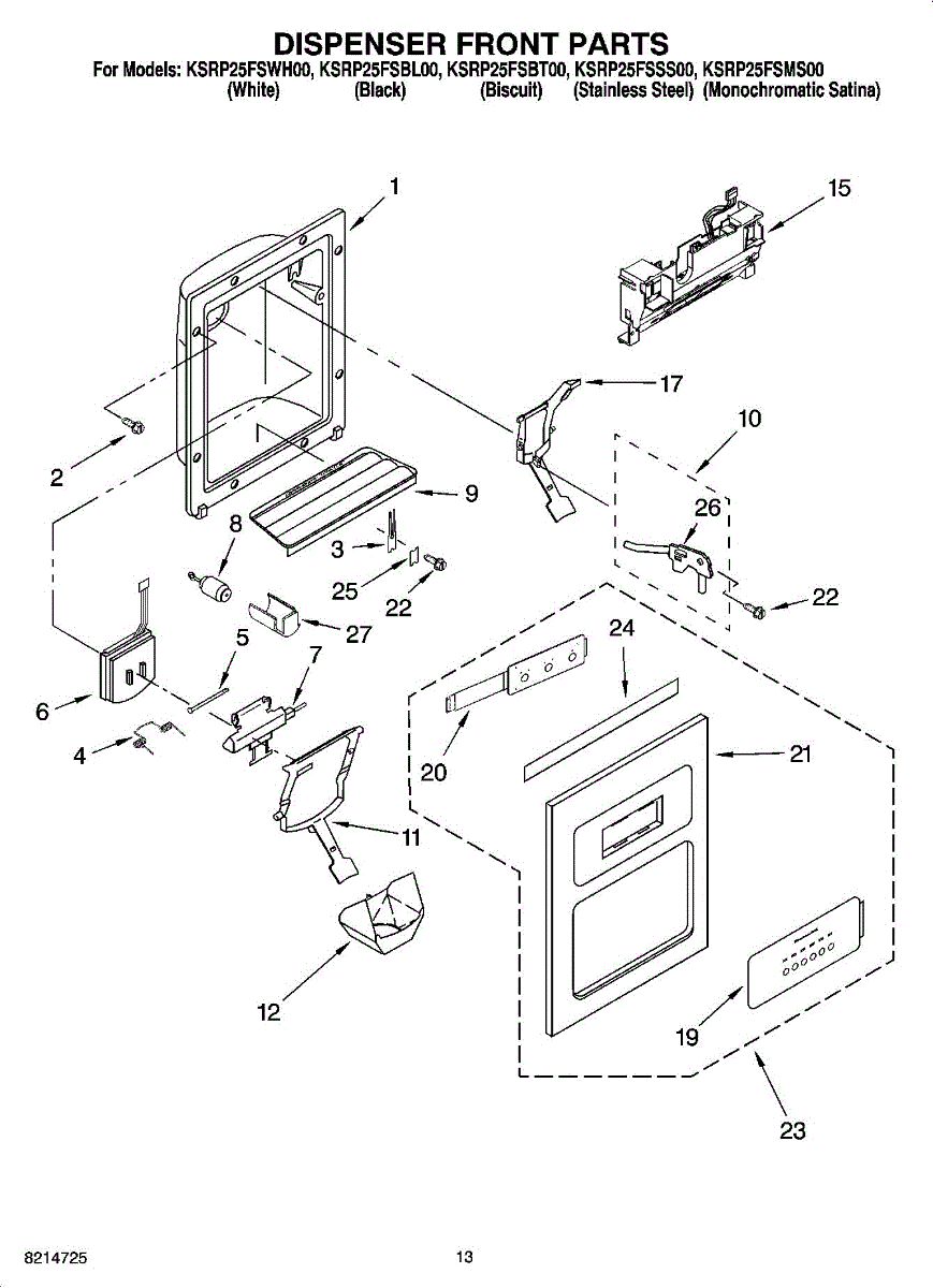 Grille sits below the water and ice dispenser on your refrigerator door to catch spills. Replace if cracked, stained, or damaged. Snaps into place.