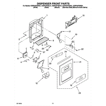 The Dispenser Overflow Grille is an OEM part for Whirlpool refrigerators. This grille sits below the water and ice dispenser on the refrigerator door, catching any spills or overflow to keep the area clean and prevent water from dripping down the refrigerator. For Black order 2206670B, for Bisque order 2206670T