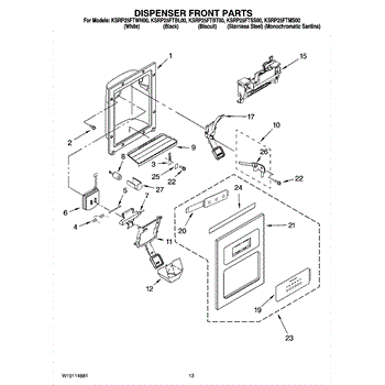 The Dispenser Overflow Grille is an OEM part for Whirlpool refrigerators. This grille sits below the water and ice dispenser on the refrigerator door, catching any spills or overflow to keep the area clean and prevent water from dripping down the refrigerator. For Black order 2206670B, for Bisque order 2206670T