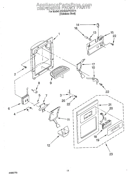 Parts for Kitchenaid KSRS22FGSS14: 07 - Dispenser Front Parts