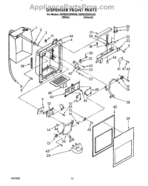 Parts for Kitchenaid KSRS22QXWH00: 09 - Dispenser Front Parts