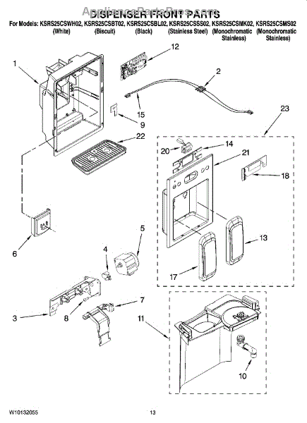 Parts for Kitchenaid KSRS25CSMK02: 08 - Dispenser Front Parts
