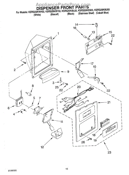 Parts for Kitchenaid KSRS25IKWH03: 08 - Dispenser Front Parts