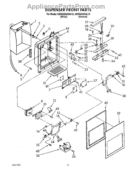 Parts for Kitchenaid KSRS25QXAL10: 09 - Dispenser Front Parts