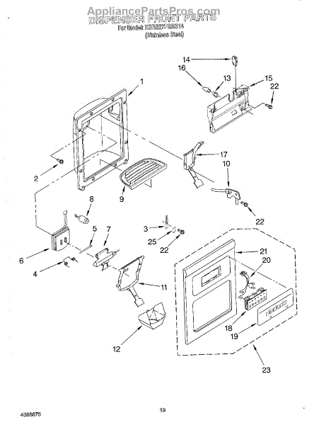 Parts for Kitchenaid KSRS27FGSS14: 08 - Dispenser Front Parts