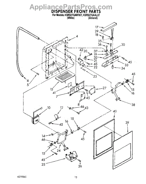 Parts for Kitchenaid KSRS27QAAL07: 08 - Dispenser Front Parts
