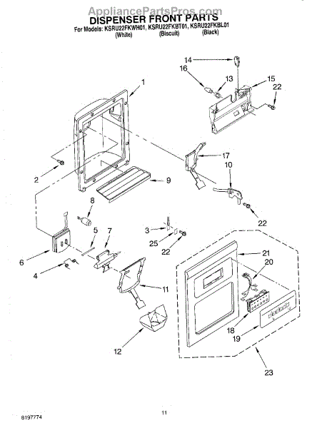 Parts for Kitchenaid KSRU22FKWH01: 07 - Dispenser Front Parts