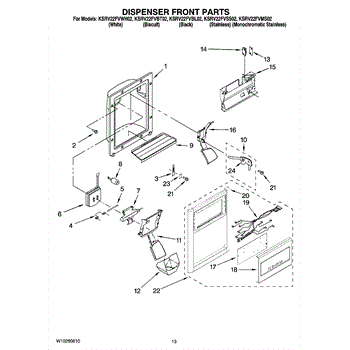 Parts for Kitchenaid KSRV22FVBT02: 08 - Dispenser Front Parts