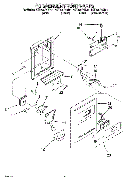 Parts for Kitchenaid KSRX25FNBT01: 08 - Dispenser Front Parts