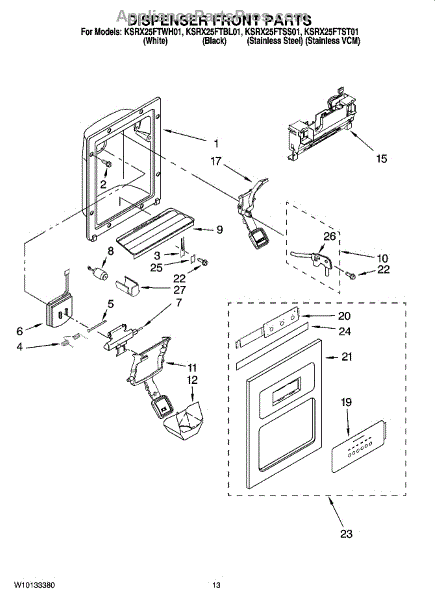 Parts for Kitchenaid KSRX25FTBL01: 08 - Dispenser Front Parts