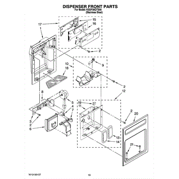 The Broken Tab Ice Door Kit is an OEM part for Whirlpool refrigerators. This kit includes all the necessary components to repair or replace the ice door chute, which is responsible for dispensing ice from the ice maker to the ice bucket or directly to the user. The ice door chute must seal properly to prevent warm air from entering the freezer compartment, which can lead to frost and ice buildup.
