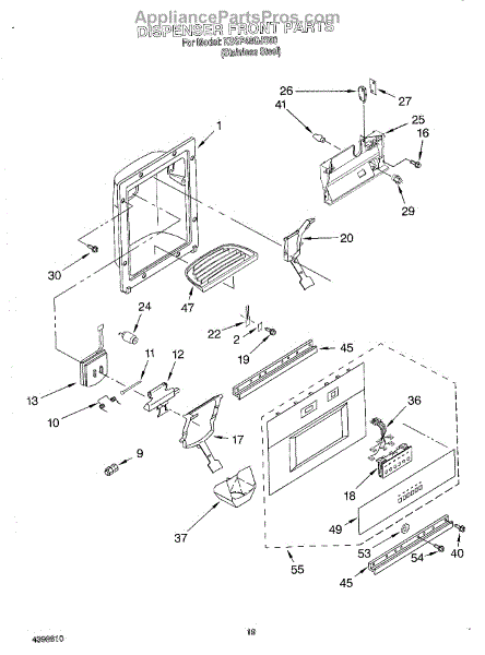 The Ice Dispenser Guide is an OEM replacement part for Whirlpool brand refrigerators. These brands also include Maytag, KitchenAid, Norge, Roper, Estate, and Kenmore models. It directs ice from the ice bucket to the dispenser chute. It helps to prevent jams by guiding the ice through the dispenser system smoothly and evenly.