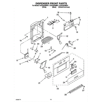 Parts for Kitchenaid KSSS36QMB01: 12 - Dispenser And Front Parts