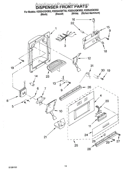 Parts for Kitchenaid KSSS42QKW02: 12 - Dispenser And Front Parts