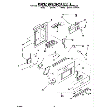Parts for Kitchenaid KSSS48QKB02: 12 - Dispenser And Front Parts