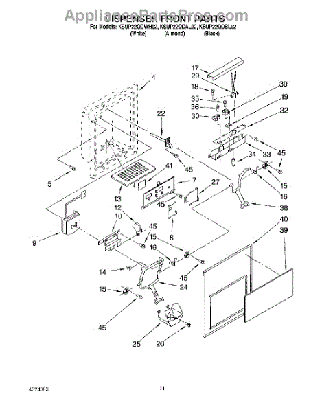 Parts for Kitchenaid KSUP22QDWH02: 07 - Dispenser Front Parts