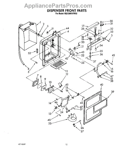 Parts for Whirlpool RS25AWXVL02: 09 - Dispenser Front Parts