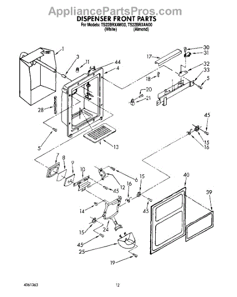 Parts for Whirlpool TS22BRXAW00: 09 - Dispenser Front Parts