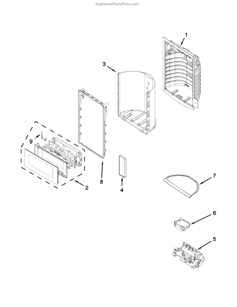 This door ice separator assembly guides ice from the dispenser chute to the dispenser tray, helping prevent jams and misfeeds. It replaces a cracked, warped, or broken separator to restore smooth ice dispensing. What it does: