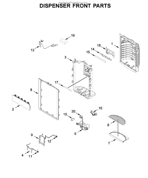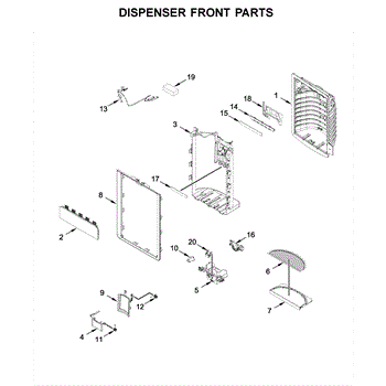 The Dispenser Drip Tray is an OEM part for Whirlpool refrigerators featuring built-in water dispensers. Located underneath the outlet spout, it collects any accidental water overflow or spilled cubes to prevent messes.