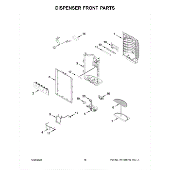 The Dispenser Drip Tray is an OEM part for Whirlpool refrigerators featuring built-in water dispensers. Located underneath the outlet spout, it collects any accidental water overflow or spilled cubes to prevent messes.