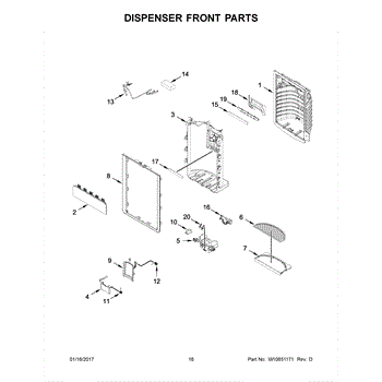 The Dispenser Drip Tray is an OEM part for Whirlpool refrigerators featuring built-in water dispensers. Located underneath the outlet spout, it collects any accidental water overflow or spilled cubes to prevent messes.